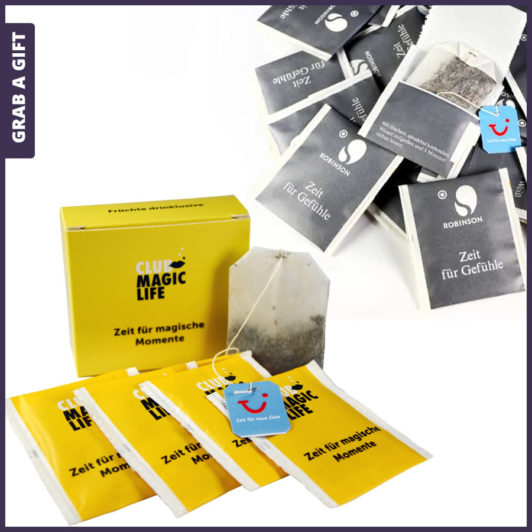 Grab a Gift is leverancier van full colour bedrukte theezakjes met jouw eigen ontwerp in kleur. Om de lekkere smaak te behouden worden de promotionele theezakjes individueel verpakt in het bekende afgesloten papieren zakje. Naast het bedrukken van het theezakje wordt ook het theelabeltje aan het katoenen draadje bedrukt met je logo.