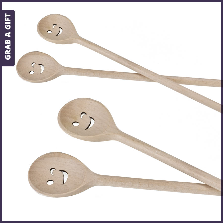 Ben je op zoek naar een vrolijke Houten Pollepel als give-away of relatiegeschenk? Grab a Gift levert houten pollepels met een laser-gesneden smiley aan de promotionele markt. Daarnaast is het natuurlijk ook mogelijk om je eigen beeldmerk of icoontje uit het hout te laten snijden met onze nauwkeurige laser.
